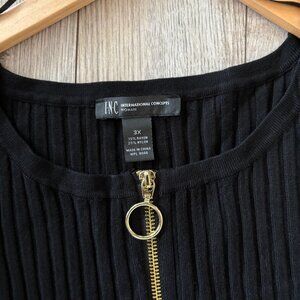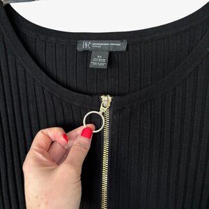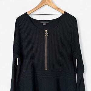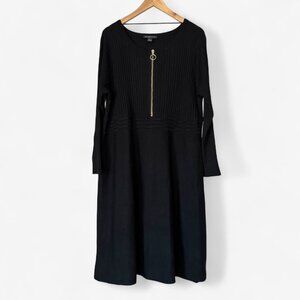 I.N.C. Long Sleeve Black Sweater Dress with Front Zipper and Empire Waist