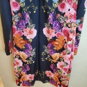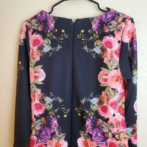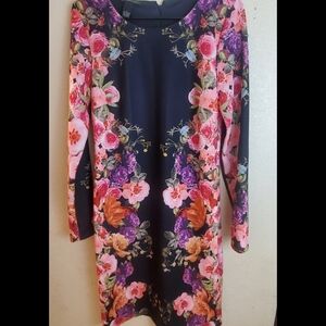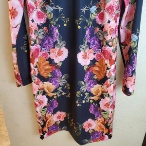 INC International Concepts Vibrant Garden long sleeve floral print dress. Scuba style. Thick ponte material. Black with pink, purple and red flowers. Very pretty. The main picture is of the same dress but different color of the floral print.