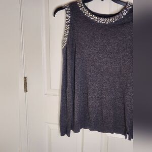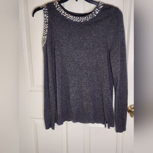 I-N-C International Concepts M Gray WOOL SILK CASHMERE Rhinestones Embellished 1 Cold Shoulder Knit Longsleeves Women Sweater
