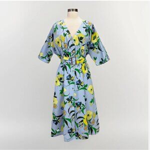 INC Mabel Poplin Belted Midi Dress Floral Bouquet Wedding Guest Summer Colorful