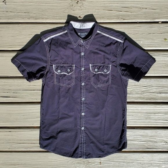 INC (Macy's) Mens Short Sleeve Button Shirt with contrast stitch and details