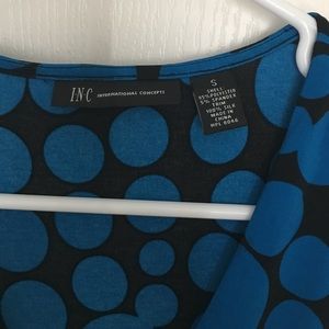 New without tags. Never worn. Jersey material fit flare style dress from INC. Black and dark turquoise blue Polka dots