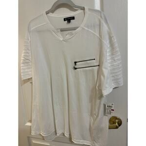 INC INTERNATIONAL CONCEPTS Men's NWT White Short Sleeve Split-Neck Textured Zipper-Pocket T-Shirt SZ 2XB