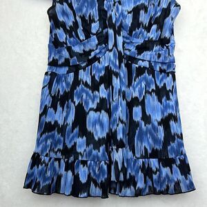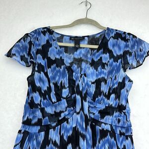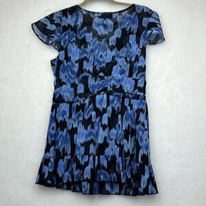 I.N.C Mesh Top Ruffle Hem Floral Print V-neck Short Sleeves Sz M