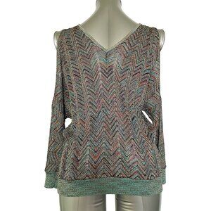 INC Metallic Chevron V Neck Top With Open Cutout Cold Shoulder Sleeves Size S