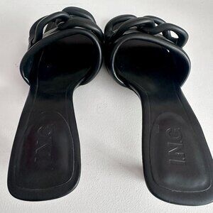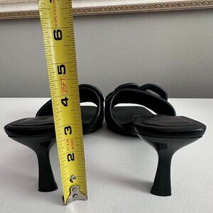 Wore once! Square open toes with chunky hardware. 3 inch kitten heel. Size 8.5. There are no signs of wear and tear. No scratches on the heels and the soles look practically new.