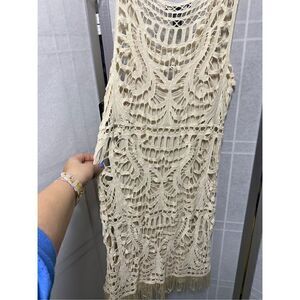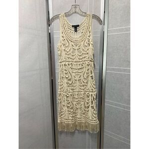 INC NEW $140 Birch Tree Sz 8 Tan Knit Under Slip Fringe Cotton