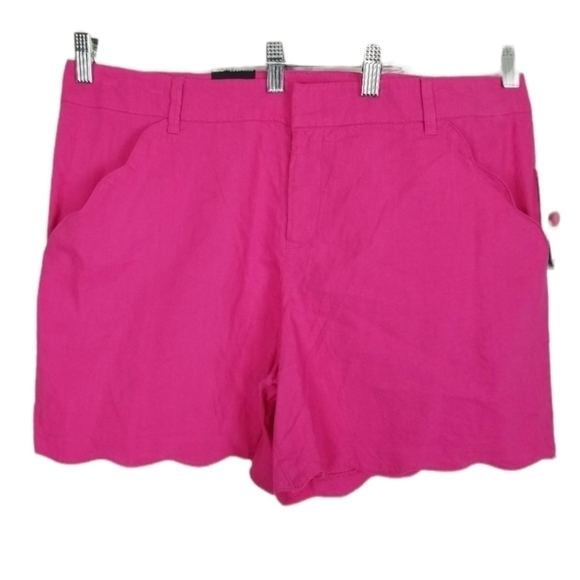 INC NWT Shorts Linen Blend Scallop Hem Regular Fit Women's Size 16 Intense Pink