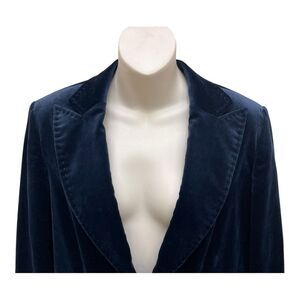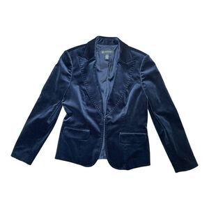 INC Navy Blue Velvet Blazer Sz M Lined Collar Classic Polished Elegant Feminine