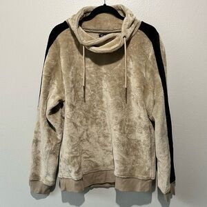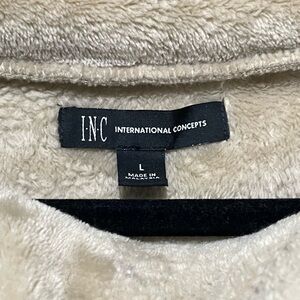 INC- Neutral Tan and Black Soft Fluffy Sweater Size L. Very soft material inside and out. Excellent condition.