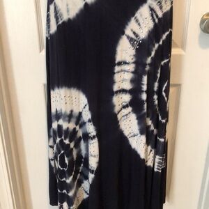 INC International Concepts Blue/White Tie-Dyed Convertible Maxi Skirt-Dress. This convertible maxi is endlessly versatile -- wear it as a strapless dress or as a floor-length skirt! Extended foldover waistband converts skirt to strapless dress. Unlined Studs 95% rayon/5% spandex Machine washable. Good Preowned condition. First 3 pictures I got off internet to show how it looks on a person not exactly same skirt. See pictures for measurements