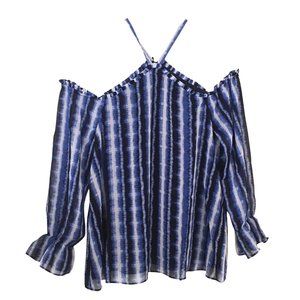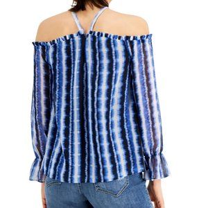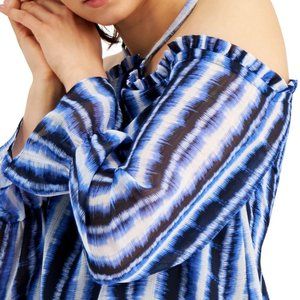 INC Off The Shoulder Halter Top Blue White Tie Dye Women's XXL NEW