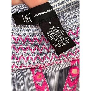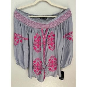 INC Off the Shoulder Blue with Hot Pink Embroidered Smocked Size S Bohemian Chic