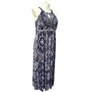 INC Paisley Print Beaded Maxi Dress, Navy White Women's Size 1X
