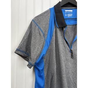 INC Performance Mens Collared Zip Up Short Sleeve Polo Shirt Blue Grey L #72