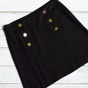 INC International Concepts petite black sailor style mini skirt. Size 6P. This super cute black mini skirt has six gold tone buttons on the front, side zip. Material, 67% rayon, 28% nylon, 5% spandex. Pre-owned good condition, does have hanger marks on the front and back waistband. Please feel free to ask if you have any questions.