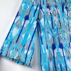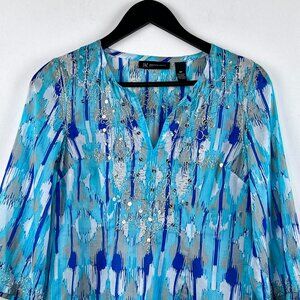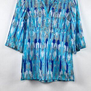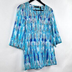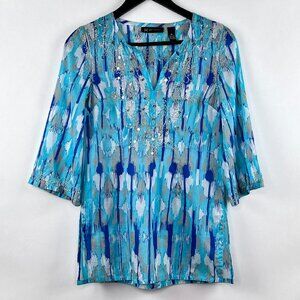 INC Petite Cotton V Neck Side Slits Sequins Embroidery 3/4 Sleeves Size 4P