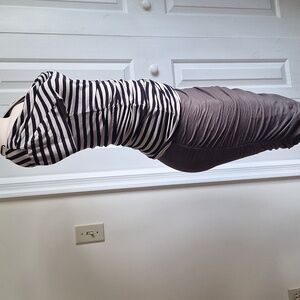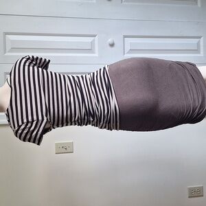 Beautiful striped black and light brown strechy top featuring elaborate beaded floral embellishment. Lightweight breathable fabric, does not display signs of wear, the top is in excellent condition and will easily fit Medium size as well.