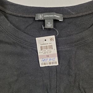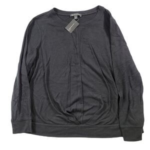 INC Pleated Sweatshirt Womens 1X Plus Size Black Scoop Collar Stretch