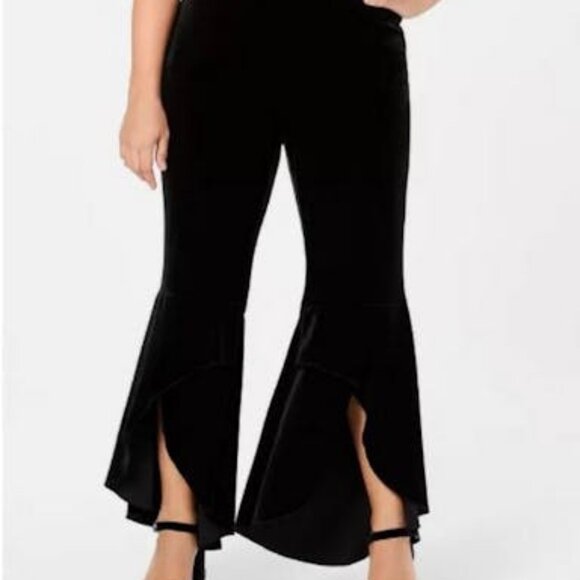 Add instant style to any look with INC International Concepts chic velvet plus size pants, featuring a fun ruffled hem.
