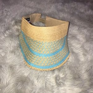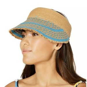 INC Printed Tweed Stripe Frayed Edge Visor (Blue) - New With Tags