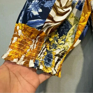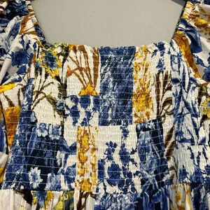 INC Puff Short Sleeve Floral Print Smocked Dress Tropical Colorful Flowy L