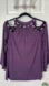 INC Purple Cold Shoulder Velvet Rhinestone Embellished Bell Long Sleeve Blouse. Pullover blouse with round neck and cut out / cold shoulders. Rhinestone embellishments around the neck and shoulders. Long length, slit bell statement sleeves with ladder stitching. Keyhole and button neck closure.