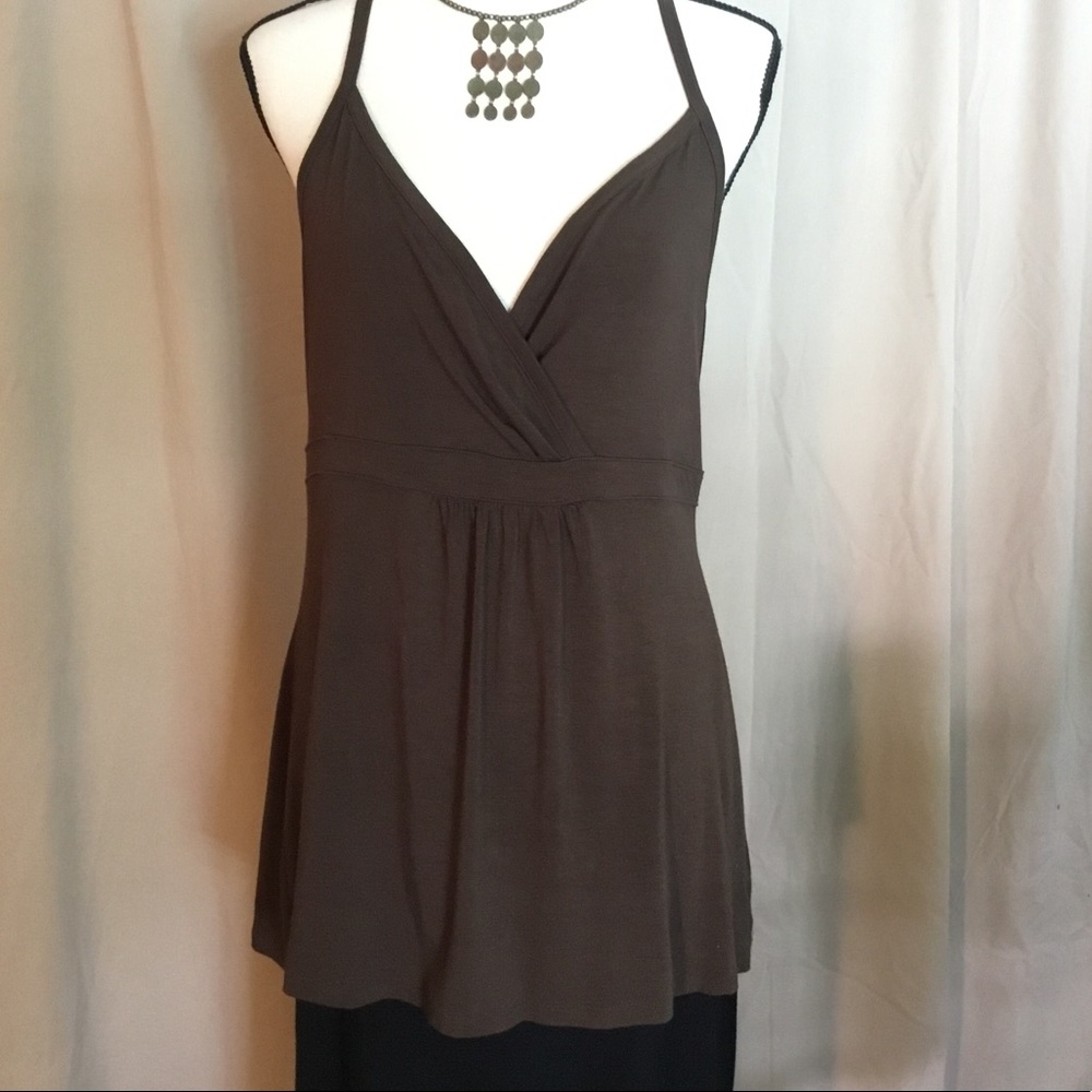 Soft, Stretchy Racerback Tunic Tank Top. 95% Rayon, 5% Spandex. Brown. L