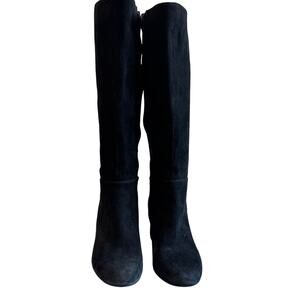 INC Radella Black Suede Knee High Zip Block Heel Boots Size 7.5