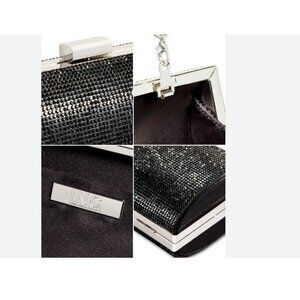 INC Ranndi embellished crystal women's clutch minaudiere evening bag - BLACK