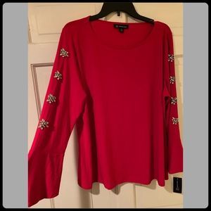 INC Red Rhinestone Embellished Top Sz 0X