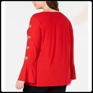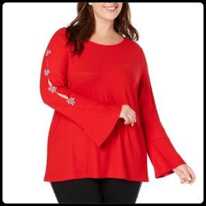 Gorgeous embellished rhinestone cluster cold shoulder blouse by INC. Blouse features bell sleeves with a cold shoulder bound by rhinestone clusters. So unique and elegant. And perfect for the holidays!