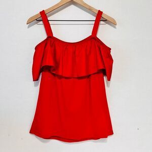 Women’s I N C Red Ruffled Off The Shoulder Top 95% Cotton 5% Spandex Excellent Used Condition