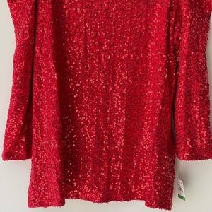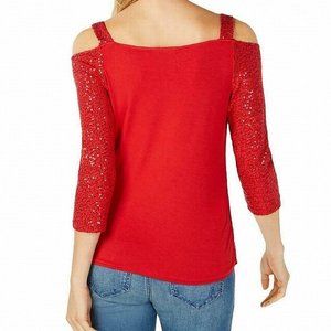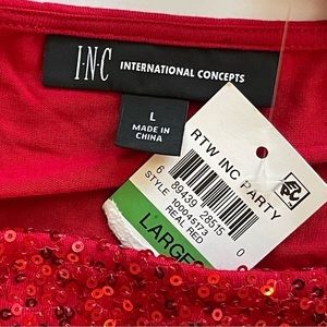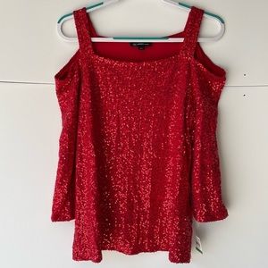 NWT! INC International Concepts Women's Red Sequin Top Shirt Blouse Cold Shoulder Holiday Top, Sz L(12)