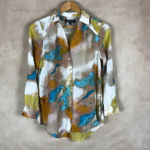 INC Roll-Tab Sleeve Smudge Print Button-Down Shirt NEW PETITE