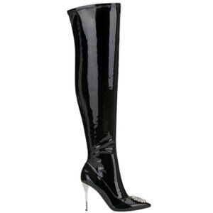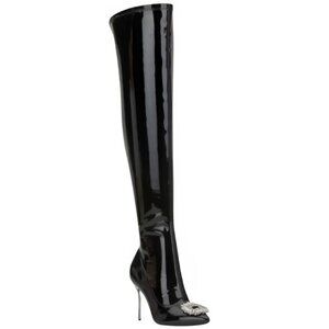 INC Romina Over-The-Knee Embellished Stiletto Boots Black Patent Sz 6 NIB