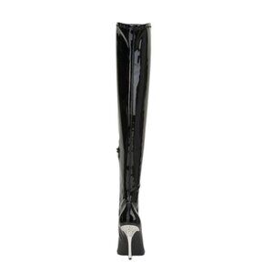 Step into sleek sophistication with these I.N.C. International Concepts Women's Romina Over-The-Knee Boots. Featuring a glossy black patent finish, pointed toe, and a sparkling embellished accent, these stiletto boots are designed to turn heads. The over-the-knee silhouette elongates the legs while the slim high heel adds dramatic height.
