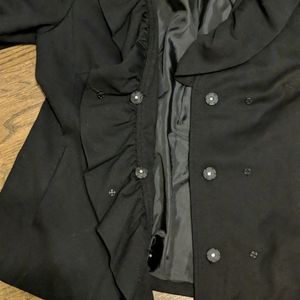 *Cute ruffle front INC hip length jacket - In overall very good Pre-owned condition. Minimal signs of wear - Iron singe at the very bottom right side. Not very noticeable - see photos. Also a loose button.