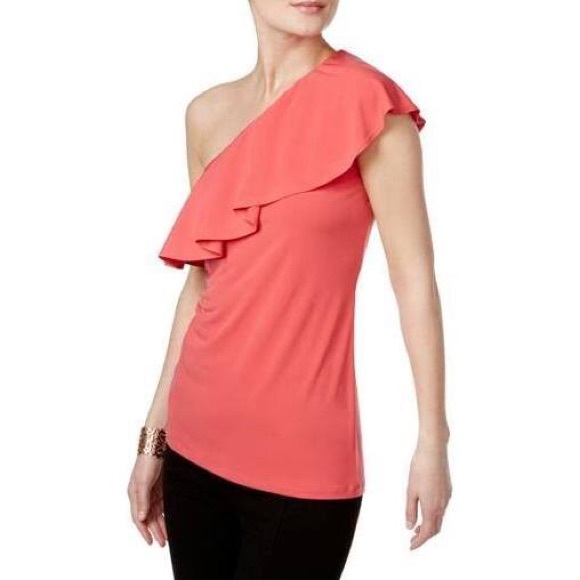 Beautiful coral one shoulder top with ruffle. đź’•