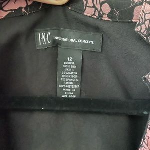 Perfect dress for the office! Floral with ruffles on top, black on the bottom. Zips up the side. Size 12.