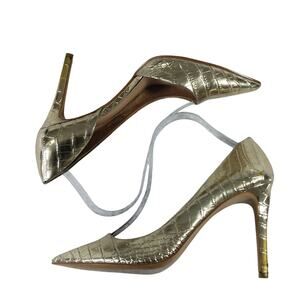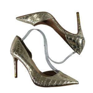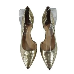From INC come these super sexy stiletto heels, in solid gold vegan leather! With a crocodile imprint, they feature a cutaway at the inside, and a pointy toe! 4" heel, Size 10M, worn twice, but with a little camo at the back heels, as they were marred. Otherwise: Excellent! Superb EUC Condition! ***ABSOLUTELY GUARANTEED CONDITION: EUC MINTY-EXCELLENT TO LIKE NEW, by Lily @HauteClub!*. Offers welcomed!***