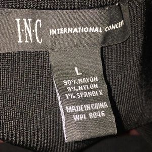 New condition. INC Bandage dress. Burgundy brownish stripes. On top Black.This dress is VERY well made. Its a nice heavy Rayon blend., This dress is super figure flattering . Sleeveless with a zipper up the back. Size L. Very sexy dress, in new condition. Smoke free home. Measurements are pit to pit is 16" Length is 37" Reasonable offers welcome.