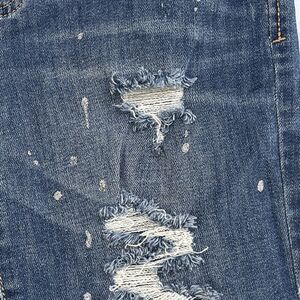 INC SZ 2/26 Jean Capris Distressed Stretch Pockets Silver Splatters Novel Wash