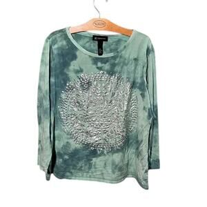INC Sage Green Tie Dye Long Sleeve Top with Metallic Mandala Design