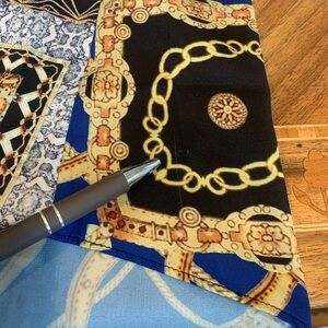 Pre-owned. There a couple of pulls, both pictured - one on the upper right and one on the lower left. Keyhole opening at back of neck. Chain detail at neck.