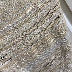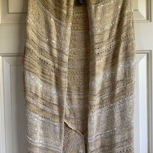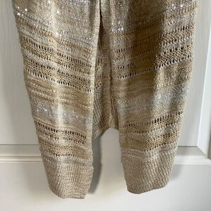 I.N.C Sequenced Pointelle Open Front Sleeveless Cardigan/Shrug Beige Gold SZ L