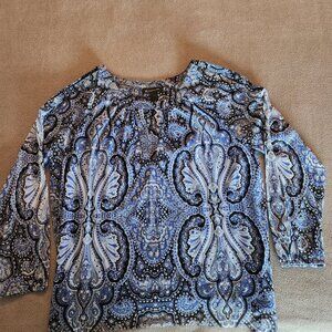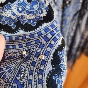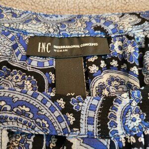 INC Sequin Blouse - fully lined, keyhole & cold shoulder in paisley blue Size 3X