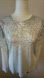 Beautiful top with sparkly sequins. Lightweight, stretchy material. Some sequins have small threads sticking out, but are not missing any that I can tell. Approximate measurements: