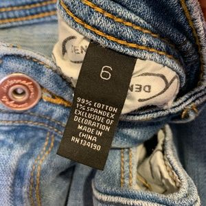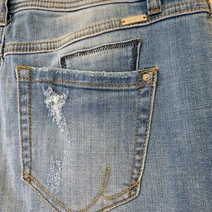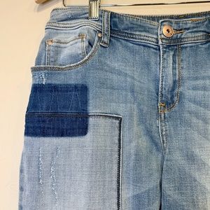 INC International Concepts Sequin Rose Gold Patch Patchwork Denim Boyfriend Regular Stretch Fit Mid-Rise Washed Factory Faded Holiday Cottagecore Boho Festival Concert Jeans