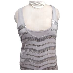 INC Sequins Tank Dress Size M Simple Lightweight Silver Gray T-shirt Dress